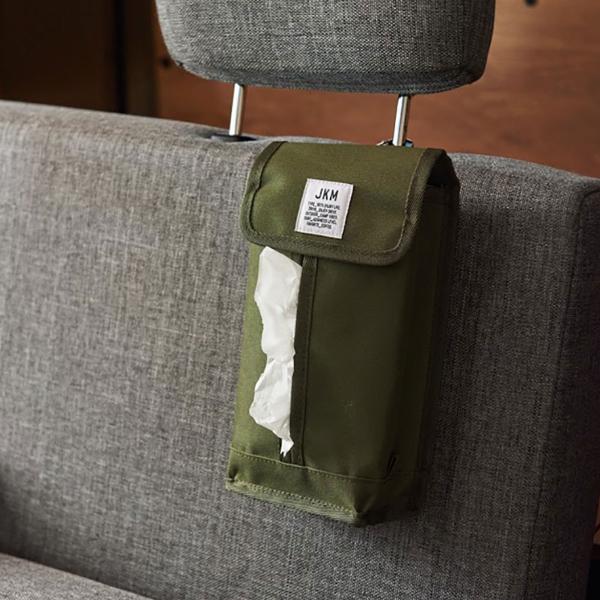 このJKM JM6 ティッシュカバー カーキなんですが、色は他にネイビーとダークグレーがありどれも良い感じ。カラビナでぶら下げる事もできるので、キャンプの時に行き場を失ったティッシュをランタンハンガーに下げて使用するとか、色々考えちゃいますよ。子供を連れて歩く時も、ちょっと?大きいですが、ズボンのベルトループにカラビナを掛けて持ち歩きも可能かと。